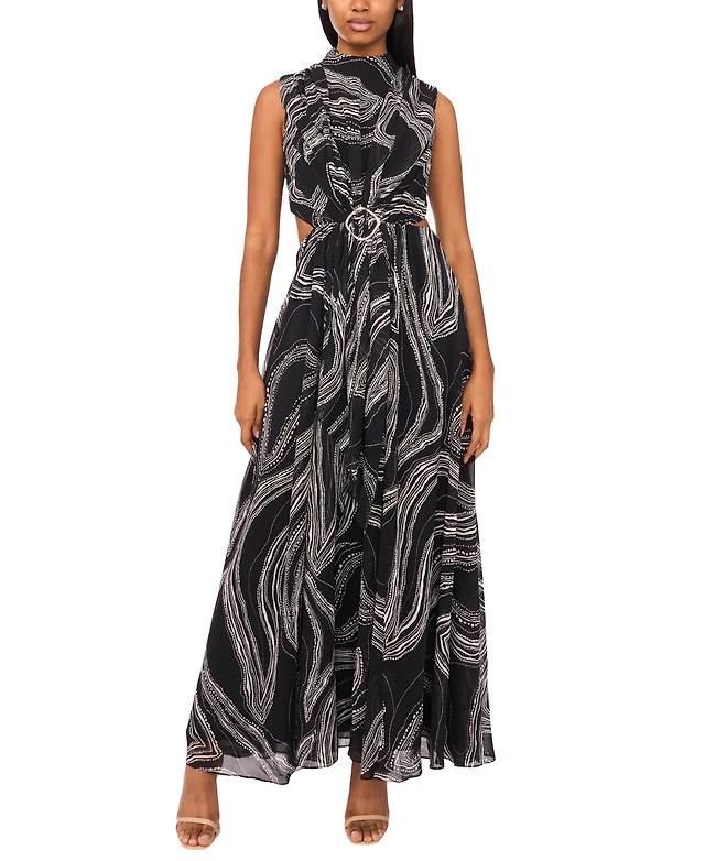 Bebe Women's Printed Chiffon Tie Front Maxi Dress