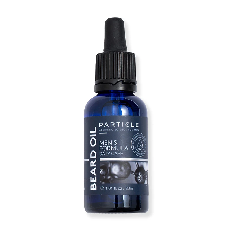 Particle Beard Oil For Men. Benefits: Softens & tames facial hair. Deeply hydrates and nourishes. Reduces itchiness & beardruff. Supports healthier hair growth. Antioxidant protection. Light, pleasant scent. Key Ingredients: Argan oil. Jojoba oil. Avocado oil. Apricot oil. Hemp oil. Castor oil. Vitamin A. Vitamin C. Vitamin E. :