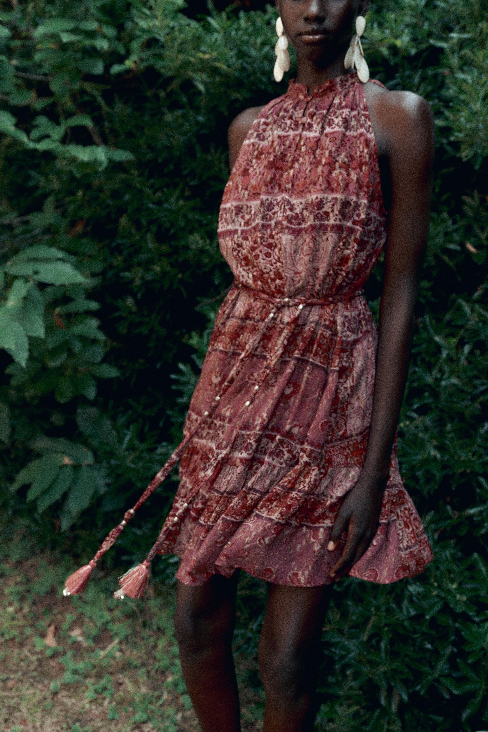 PATCHWORK PRINT MINI DRESS WITH BELT