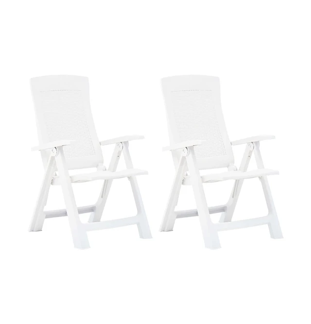 2PCS Patio Rattan Folding Lounge Chair Chaise Adjustable White Cushion