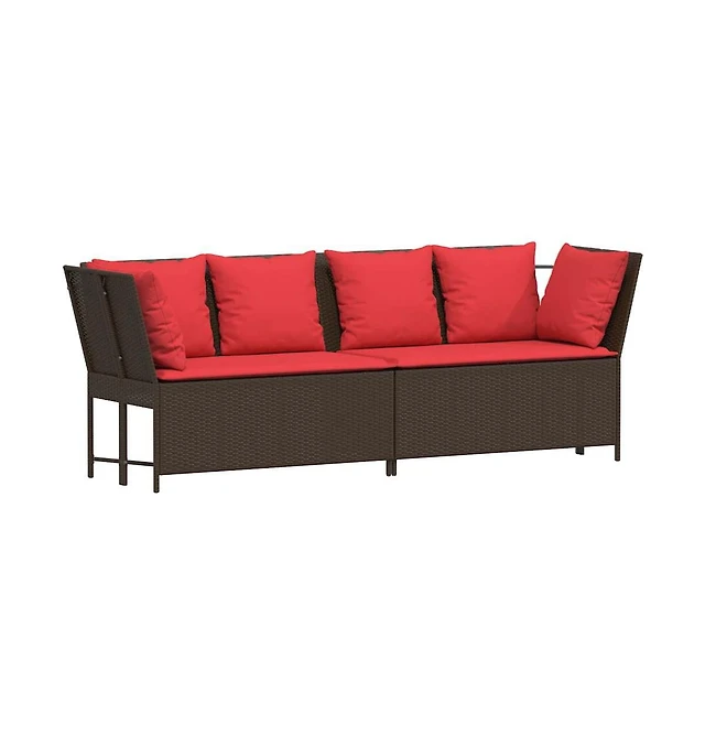 Garden Sofa Brown, Red Pe rattan, Steel, Polyester 2-seater