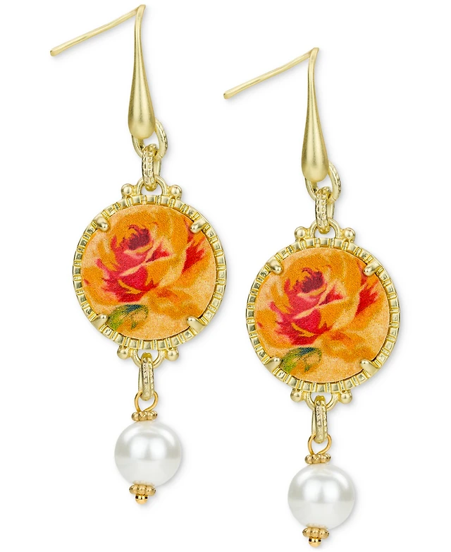 Patricia Nash Beaded Floral Gold-Tone Round Drop Earrings
