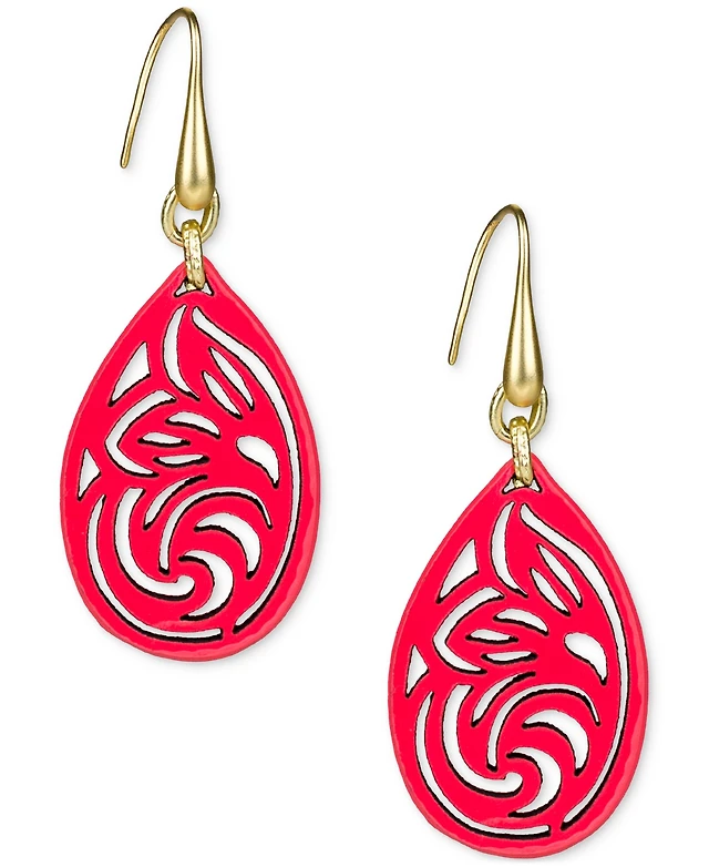 Patricia Nash Gold-Tone Lace Pattern Leather Drop Earrings