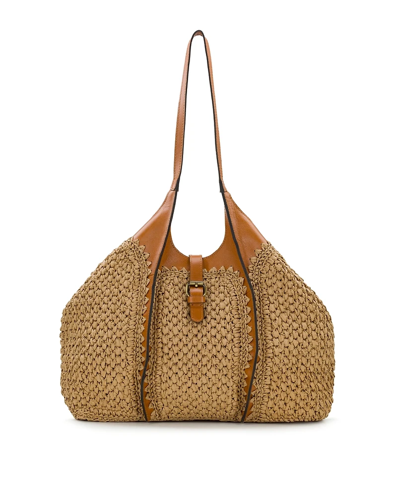 The perfect warmer weather style, Patricia Nash's Santorini is a truly covetable, roomy satchel that features paper straw and leather. In gorgeous Patricia Nash fashion, this bag delivers elegance and practicality. Change the shape of its profile using the side snaps. Whether you carry it in its square silhouette or drawn in at the sides, you'll get noticed.