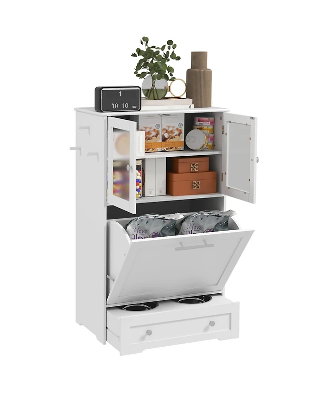 PawHut Dog Feeding Station w/ 2 Storage Cabinet, Side Hooks, Anti-tip Kit