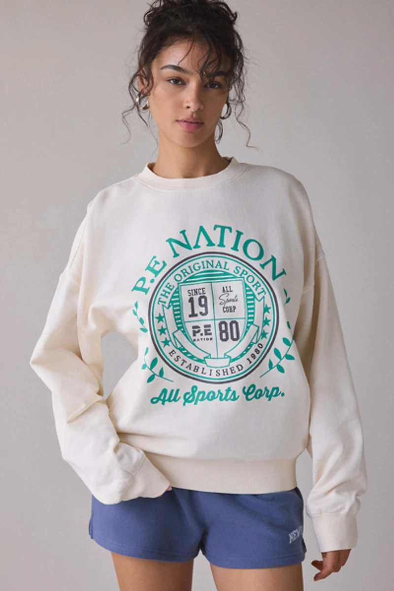 P.E Nation Crest Graphic Crew Neck Sweatshirt