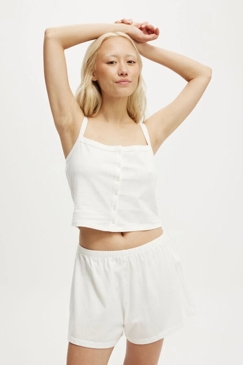 Made from luxuriously soft, peached jersey fabric, our peached jersey button up cami offers a silky-smooth feel against the skin. The button-up front adds a touch of charm and Functionality, enhancing the cami’s versatile appeal. Making it an amazing addition to your wardrobe.