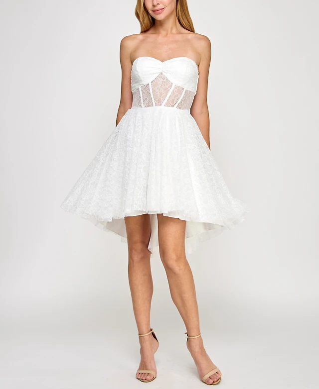 pear culture Juniors' Strapless Lace High-Low Dress