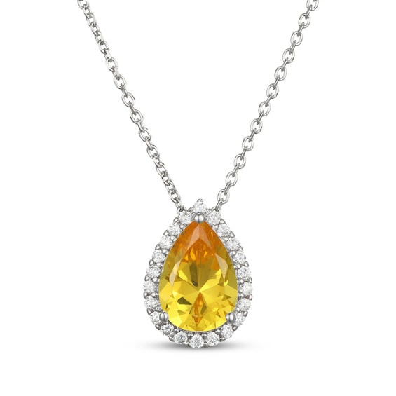 Pear-Shaped Yellow & White Lab-Created Sapphire Necklace Sterling Silver 18"