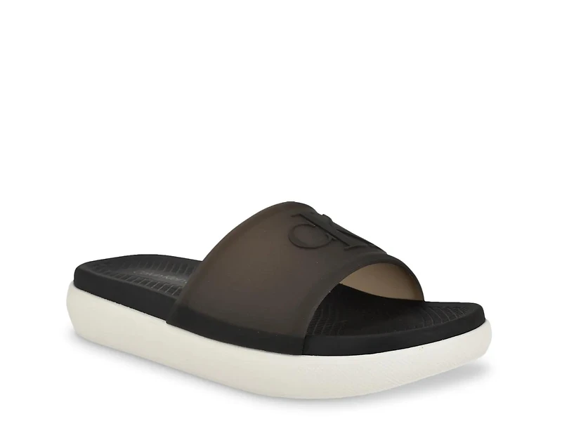 Add to your summery fits with the Calvin Klein Peari slide. This sandal sports a classic design that's sure to pair well with your casual looks, while the cushy footbed provides comfort underfoot.