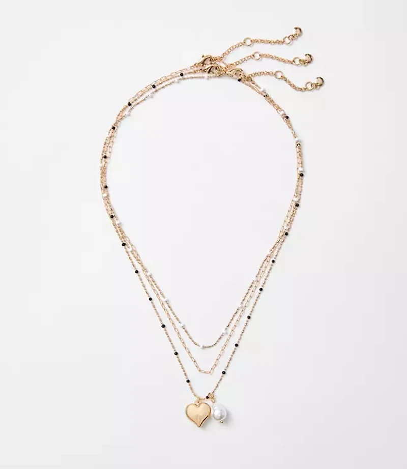 Glowing with a metallic heart and pearlized bauble, this delicately beaded layered necklace set is our latest love. Spring ring closures. 16", 17 and 18 long with 2"extenders., Imported: Loft Pearlized Heart Layered Necklace Set Women's by Loft Size Regular - One Size Multicolor Women's Necklaces, Jewelry