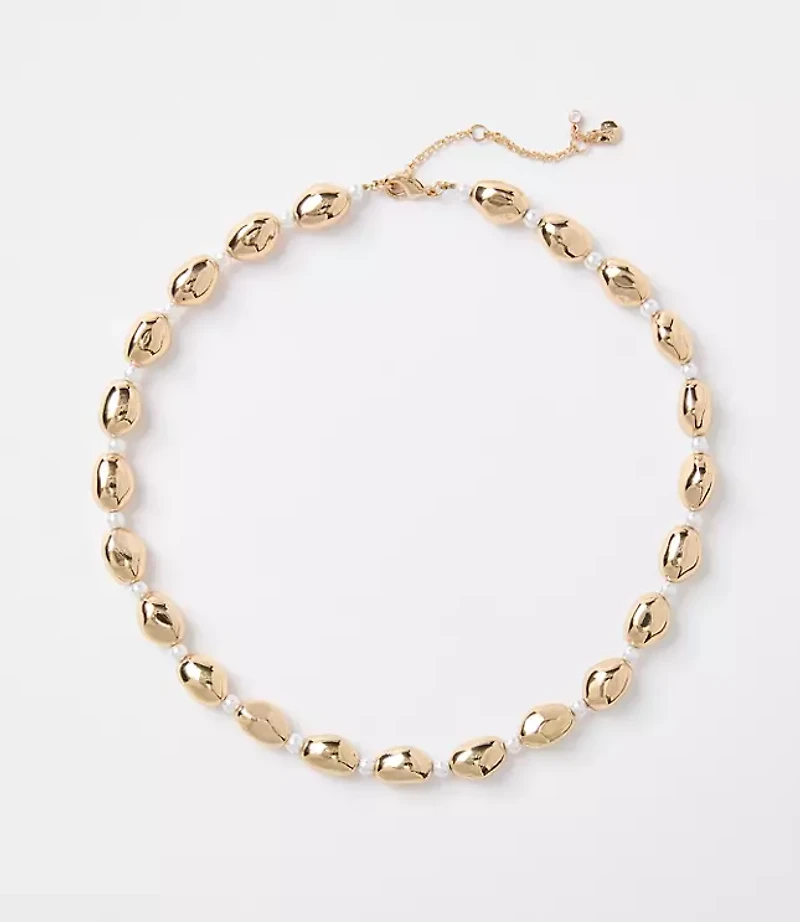 Strung with the glossiest pearlized beads and metallic nuggets, we love the chunky meets chic finish of this fresh statement maker. Claw clasp, Imported: Loft Pearlized Nugget Statement Necklace Goldtone Women's by Loft Size Regular - One Size Goldtone Women's Necklaces, Jewelry