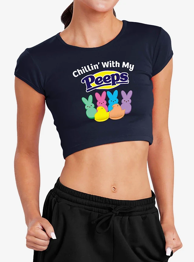 Peeps Easter Chillin' With My Baby Rib Womens Crop Top