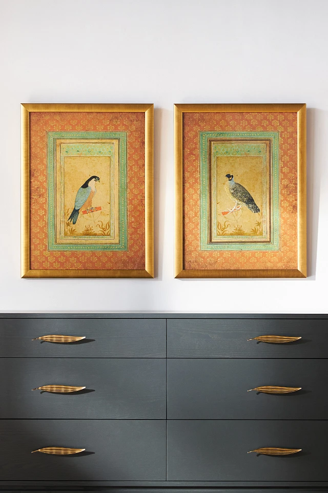 Courtside Market floral bird triptych Gallery-Wrapped Canvas Wall Art - 16" x 16"