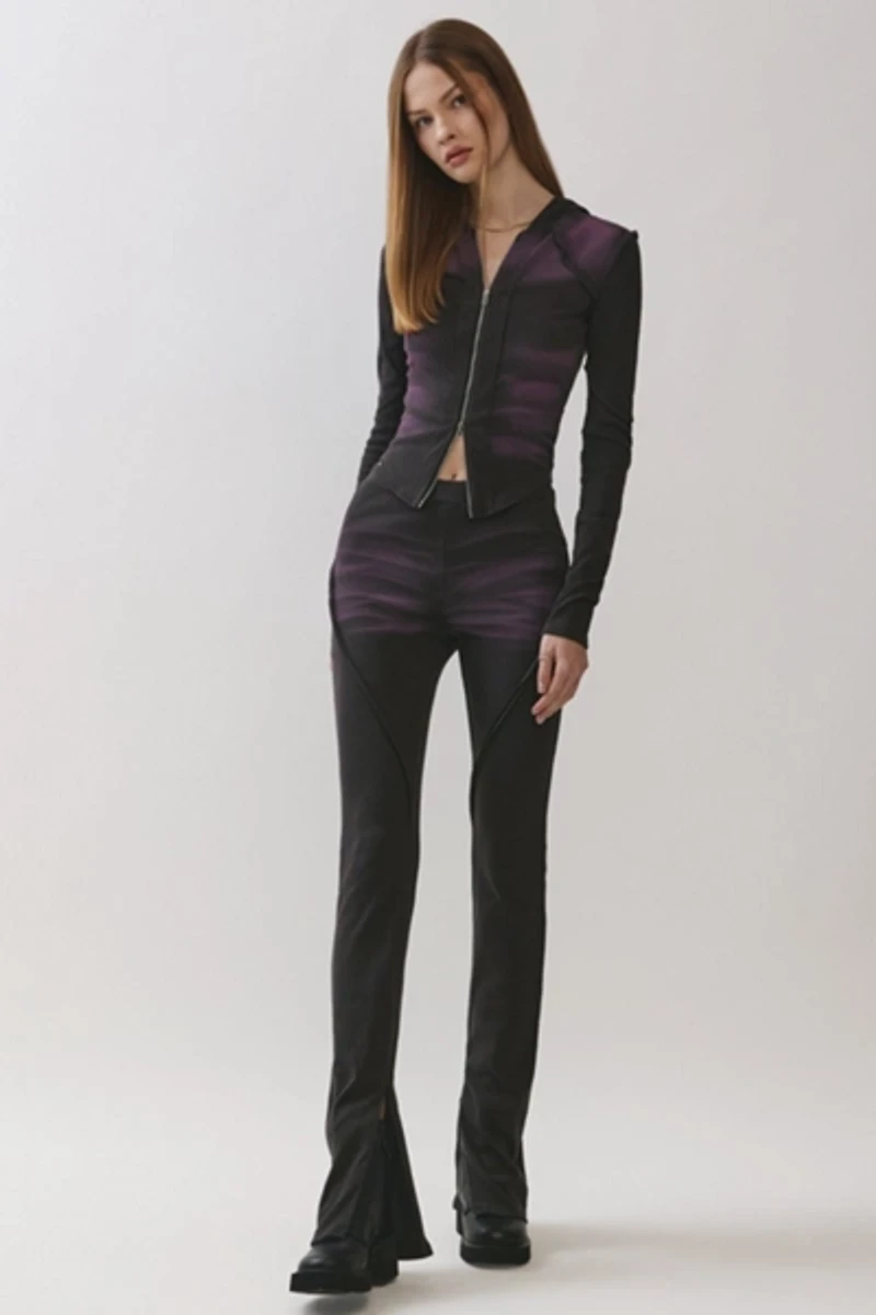The Dusk Flared Pants are made from a stretchy ribbed fabric with outseam raw-edge cut detailing
