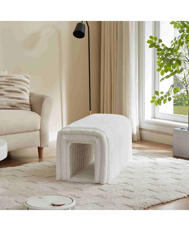 Pet-Friendly Ottoman Storage Bench with Arch Hollow Design, Multi-Functional for Living Room, Bedroom & Entryway-The Pop Home