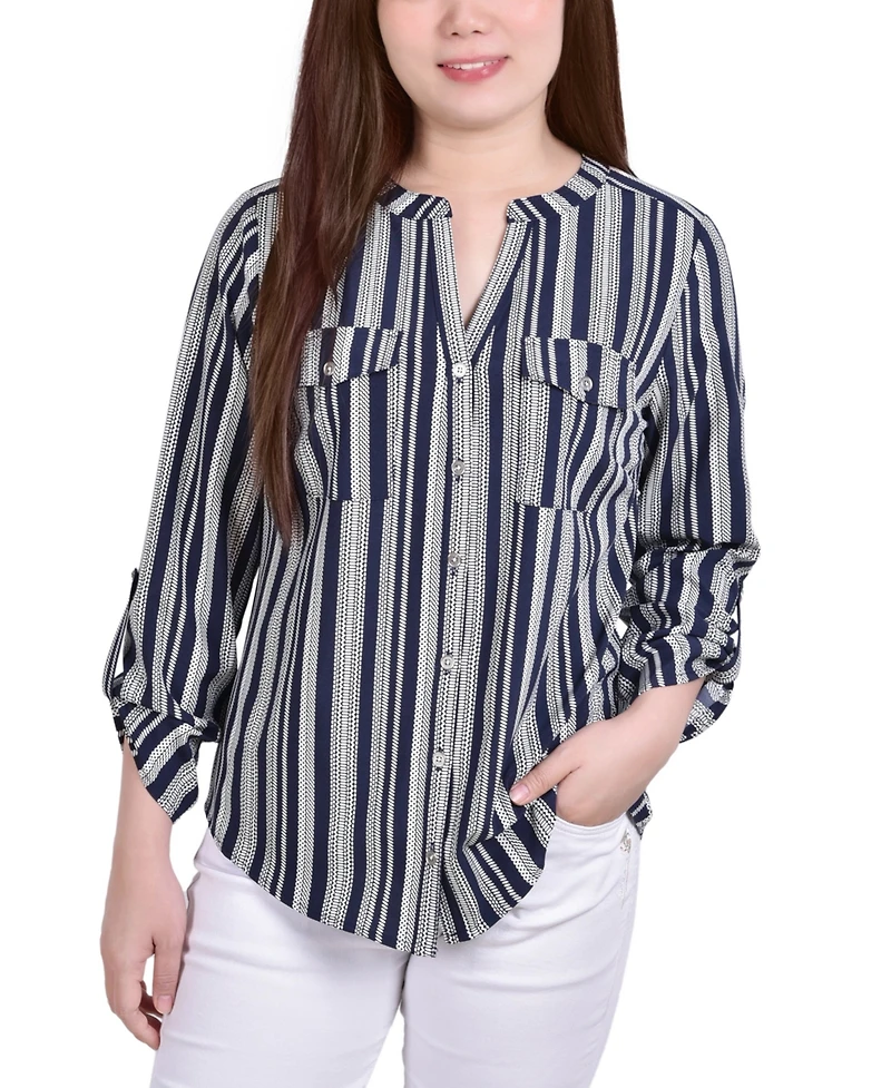 Comfortable and cute, Ny Collection offers this utility style top, with roll-tab sleeves and pocket details for a complete and polished look.