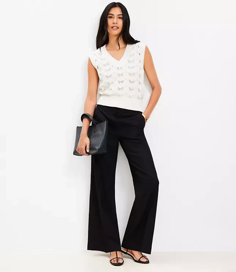 Pants Details: Front zip with hook and bar closure. Slash pockets Back welt pockets., Leg Shape: Clean Wide Leg - fitted through the hip and thigh, finishing with a wide leg, Rise: Sits at natural waist, 11 1/8"rise, Imported:, Fit: A versatile and clean wide leg, in a relaxed linen blend, Length: Full length, 28"inseam, Fabrication: 55% Linen 45 Viscose, Garment Care: Machine Washable Loft Petite Clean Wide Leg Pants in Linen Blend Size 8 Black Women's by Loft Size Petite - 8 Black Women's Regular, Wide Leg Pants 55% Linen 45% Viscose Machine Washable