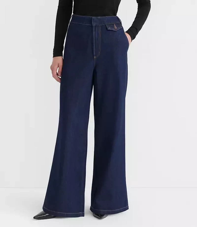 There's a new jean in town. And there's nothing cooler than being the first to make them your own. We believe the best jeans make the outfit. These are the ones. Effortlessly cool Uniquely versatile And totally worthy of that"I told you so"attitude. We knew you'd know a good thing., Pants Details: Front zip with hook and bar closure. Belt loops Button flap waist pocket. Slash pockets Back welt pockets., Leg Shape: Trouser - fitted through the hip, with a flattering wide leg, Rise: 12 1/2"high rise, sits at natural waist, Imported:, Fit: Our petite curvy jeans have smaller proportions designed to perfectly fit and flatter curves with a roomier hip and thigh - the gap - free waistband of your dreams!, Length: Full length, 28 1/2"inseam, Fabrication: 13% Recycled Cotton 52% 35 Lyocell, Garment Care: Machine Washable Loft Petite Curvy High Rise Trouser Jeans in Dark Rinse Size 24 Women's by Loft Size Petite - 24 Dark Rinse Women's Curvy, Dark Wide Leg Pants 13% Recycled Cotton 52% Cotton 35% Lyocell Machine Washable