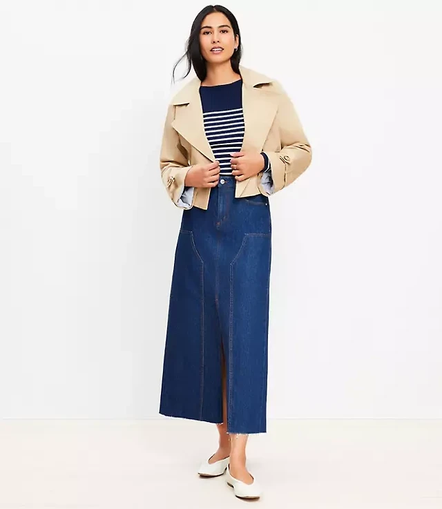 Petite Studded Denim Maxi Skirt Classic Mid Wash