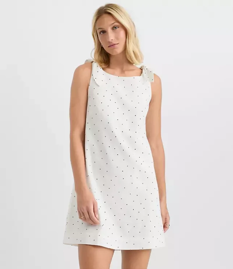 Topped with shoulder ties - and endlessly sleek, chic and versatile - this structured woven linen cotton mini is sure to be your newest forever fave. Boatneck Sleeveless Side zip Lined, Imported:, Fit: Waisted - fits and flatters waist, Length: 32 1/4"from center back neck to hem, measured from a size 8 / M, Fabrication: Shell 55% Linen 45 Cotton, Lining: 100% Cotton, Garment Care: Machine Washable Loft Petite Dotted Linen Cotton Tie Boatneck Mini Dress Size 2XS White Women's by Loft Size Petite - 2XS White Women's Fit, & Flare Dresses Work Shell: 55% Linen 45% Cotton Lining: 100% Cotton Machine Washable