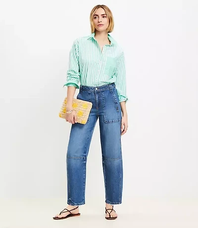 Petite High Rise Utility Barrel Jeans