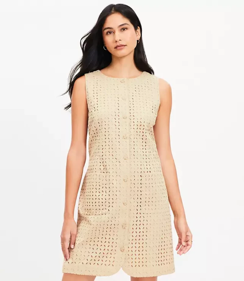Petite Eyelet Button Mini Pocket Dress
