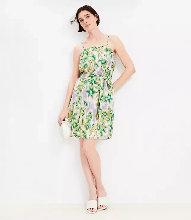 Petite Floral Pintucked Bow Mini Pocket Dress