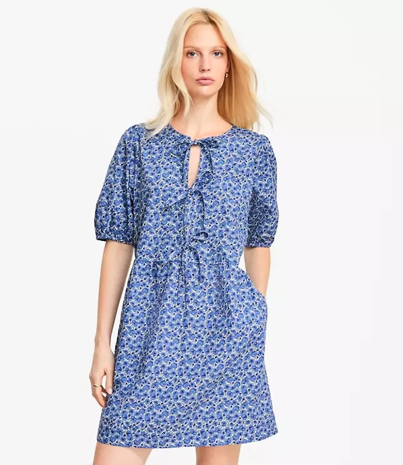 Petite Floral Poplin Bow Mini Pocket Dress