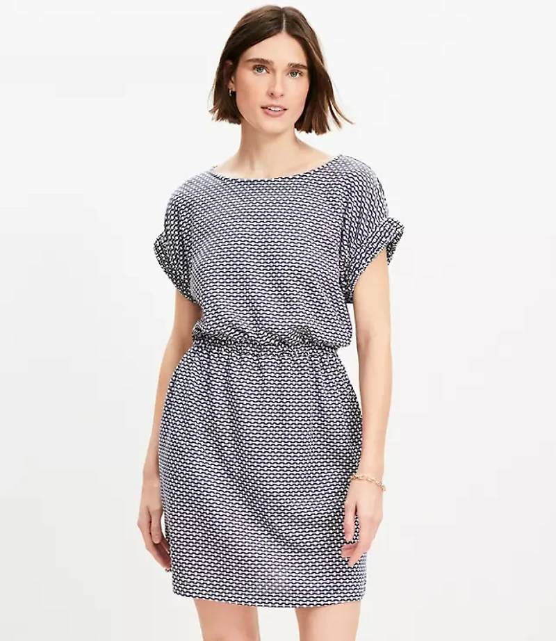 From its softly textured cotton blend knit to its endlessly comfy elasticized waist, this pocketed tee dress is a style win - from every angle. Crew neck Short sleeves with elasticized cuffs. Elasticized waist Onseam pockets, Imported:, Fit: Waisted - fits and flatters waist, Length: 33 1/2"from center back neck to hem, measured from a size 8 / M, Fabrication: 57% Cotton 43 Polyester, Exclusive of Elastic, Garment Care: Machine Washable Loft Petite Geo Mini Pocket T - Shirt Dress Size XS Blue / White Combo Women's by Loft Size Petite - XS Blue / White Combo Women's Fit, & Flare Dresses Work 57% Cotton 43% Polyester Exclusive of Elastic Machine Washable