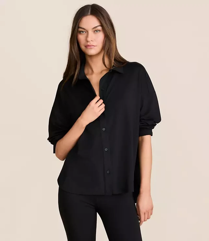 Lightweight, super - soft, down to move - our brushedsoft fabric has it all. Point collar Long sleeves Button front Back yoke Shirttail hem, Imported:, Length: 26"long, Fabrication: 85% Polyester 15 Spandex, Garment Care: Machine Washable Lou & Grey Petite Brushedsoft Shirt Size 2XS Black Women's by Lou & Grey Size Petite - 2XS Black Women's Brushedsoft, Long Sleeve Tops 85% Polyester 15% Spandex Machine Washable