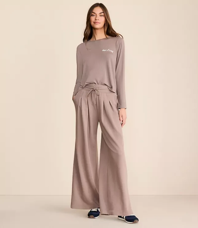 Petite Lou & Grey Cozy Cotton Pleated Wide Leg Pants