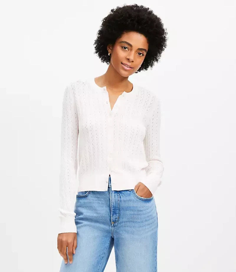 This forever polished, soft cardigan becomes an instant statement finish for everyday looks with pretty pointelle. Crew neck Long sleeves Button front, Bullet1: 19 3/4"long, Imported:, Fit: Slim streamlined to fit close the body, Length: Abbreviated - hits at natural waist, Fabrication: 69% Rayon 31 Polyester, Garment Care: Machine Washable Loft Petite Pointelle Cardigan Sweater Size 2XS Heavenly Pink Women's by Loft Size Petite - 2XS Heavenly Pink Women's Crew, Neck Long Sleeve Cardigan Sweaters Dressy 69% Rayon 31% Polyester Machine Washable Best Fall Sweaters