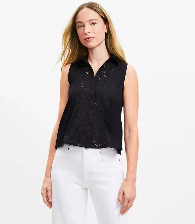 Ann Taylor Petite Pintucked Sleeveless Shirt Women's