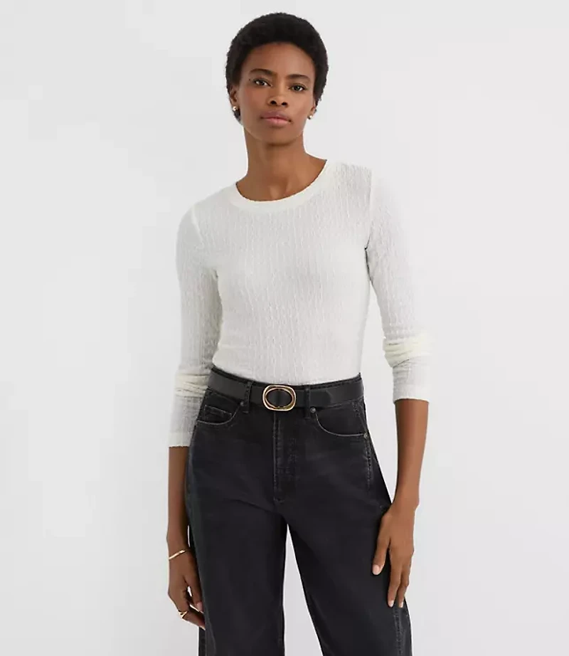 In the prettiest puckered texture, this forever essential fits and flatters in all the right places - worn alone or layered. Crew neck Long sleeves, Hit: Hits at hip, Imported:, Length: 21 1/2"long, Fabrication: 98% Polyester 2 Spandex, Garment Care: Machine Washable Loft Petite Puckered Long Sleeve Crew Neck T - Shirt Size 2XS Whisper White Women's by Loft Size Petite - 2XS Whisper White Women's Crew, Neck Long Sleeve Tees Tops Wear To Work 98% Polyester 2% Spandex Machine Washable