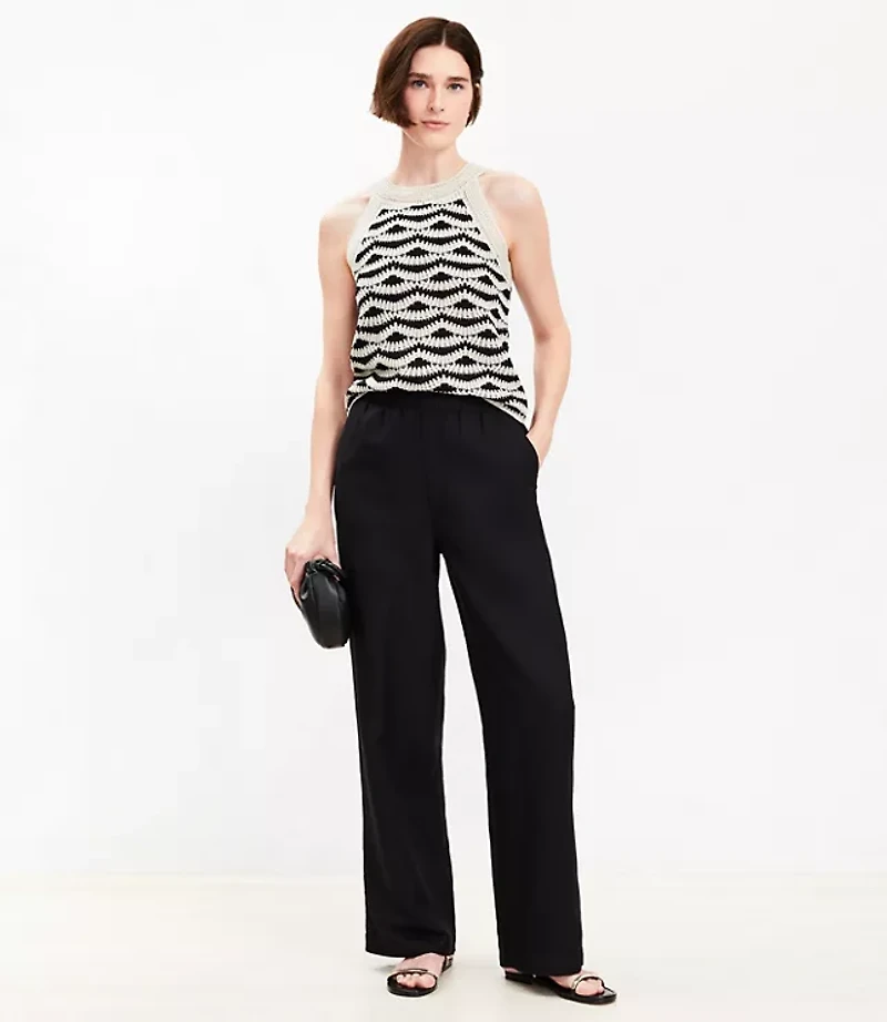 Pants Details: Elasticized waist. Slash pockets Back patch pockets., Leg Shape: Pull On Straight - fitted through the hip and thigh, straight through the leg, Rise: Sits at high waist, 11 5/8"rise, Imported:, Fit: Easy and effortless - with a comfortable elasticized waist, Length: Full length, 27 1/2"inseam, Fabrication: 55% Linen 45 Viscose, Garment Care: Machine Washable Loft Petite Pull On Straight Pants in Linen Blend Size Small Black Women's by Loft Size Petite - S Black Women's Regular, Straight Pants 55% Linen 45% Viscose Machine Washable