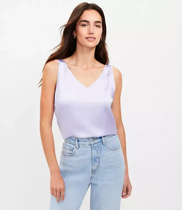 Petite LOFT Beach Floral Poplin Cutout Tank Top