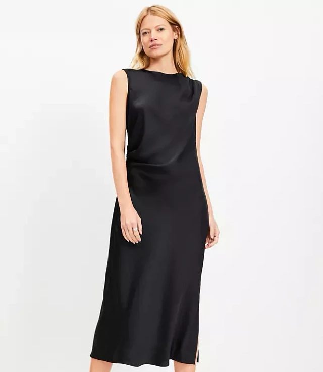 Vince Camuto Petite Side Ruche Foil Cowl Neck Midi Dress