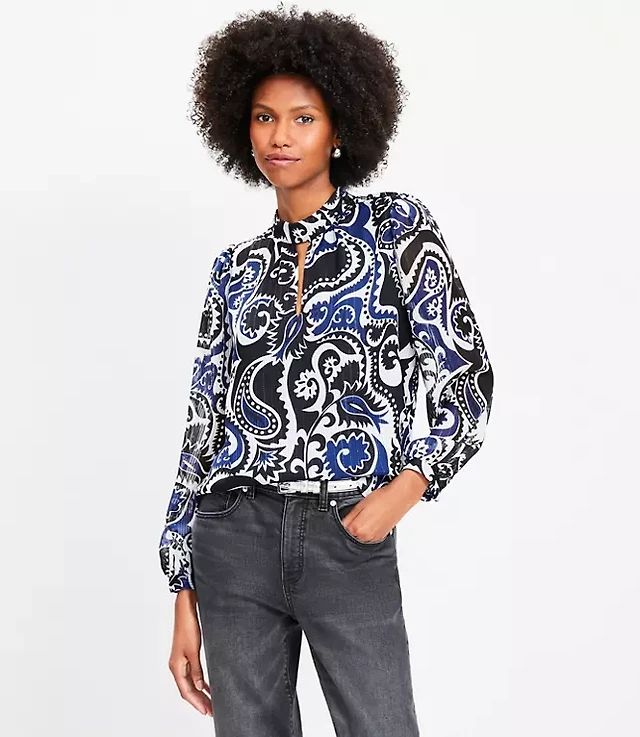 Shimmer Stripe Paisley Mock Neck Blouse