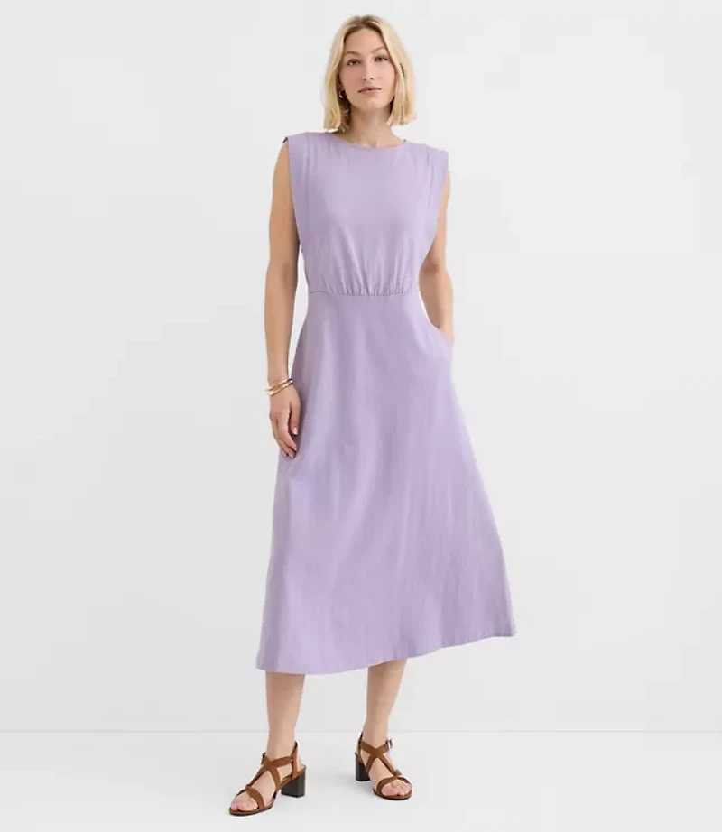 Styled with too - cool side panels at its bodice, this super soft cotton jersey midi dress is a study in effortless allure. Crew neck Sleeveless Onseam pockets Side zip, Imported:, Length: 44 1/2"from center back neck to hem, measured from a size 8 / M, Fabrication: 100% Cotton, Garment Care: Machine Washable Loft Petite Side Paneled Midi Pocket Dress Size XS Chastetree Bloom Women's by Loft Size Petite - XS Chastetree Bloom Women's Shift, Dresses Everyday 100% Cotton Machine Washable