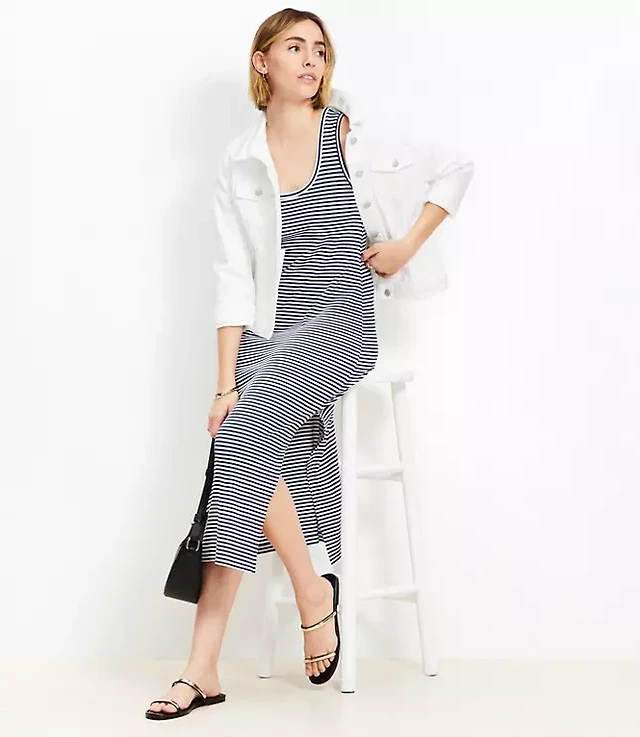 Stripe Perfect Ribbed Tank Midi Dress