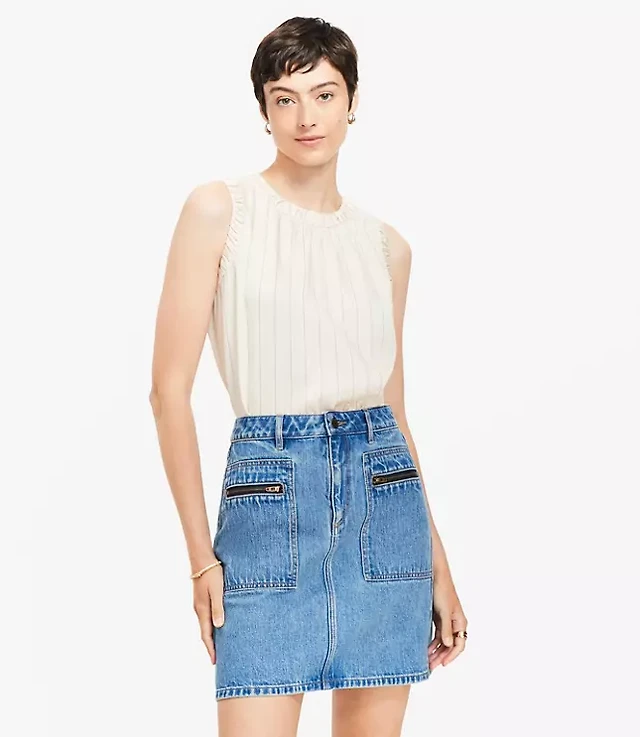 Petite Split Neck Mixed Media Shell