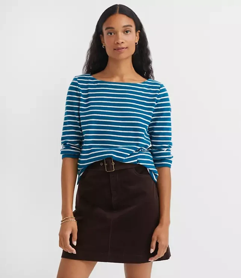 In heavier - weight 100% cotton slub: the tee just got an all - year round upgrade. Boatneck 3/4 sleeves. Side slits, Bullet1: 23 1/4"long, Imported:, Fit: Classic follows your contours with a little room, Length: Regular - hits below natural waist, Fabrication: 100% Cotton, Garment Care: Machine Washable Loft Petite Striped Harbor T - Shirt Size 2XS Pacific Sea Women's by Loft Size Petite - 2XS Pacific Sea Women's 100%, Cotton Boatneck 3/4, Sleeve Tees Tops Everyday 100% Cotton Machine Washable