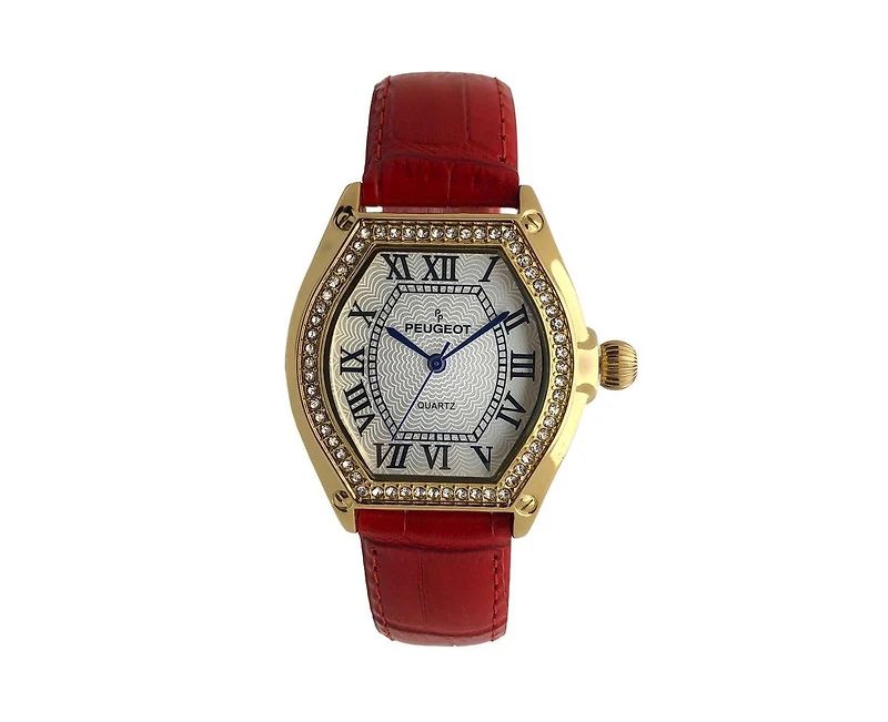 Peugeot Women's 36mm Red Watch Barrel Shaped Tank Case Leather StrapPeugeot Women's 36mm Red Watch Barrel Shaped Tank Case Leather StrapPeugeot Women's 36mm Red Watch Barrel Shaped Tank Case Leather Strap