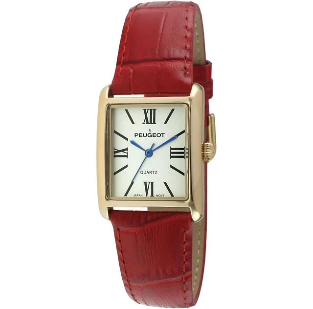 Peugeot Women's Tank Watch Roman Dial Red Leather Strap