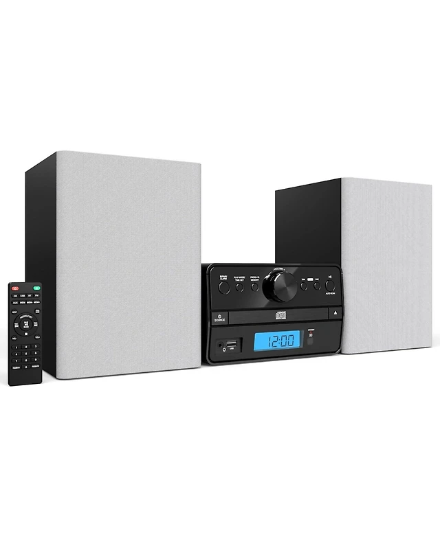 Philco Stereo Shelf Systems Tray Loading Cd Player with Digital Fm Radio, Bluetooth Streaming, Remote Control in Silver
