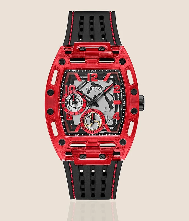 Guess Men's Phoenix Black Silicone Strap Watch 43mm