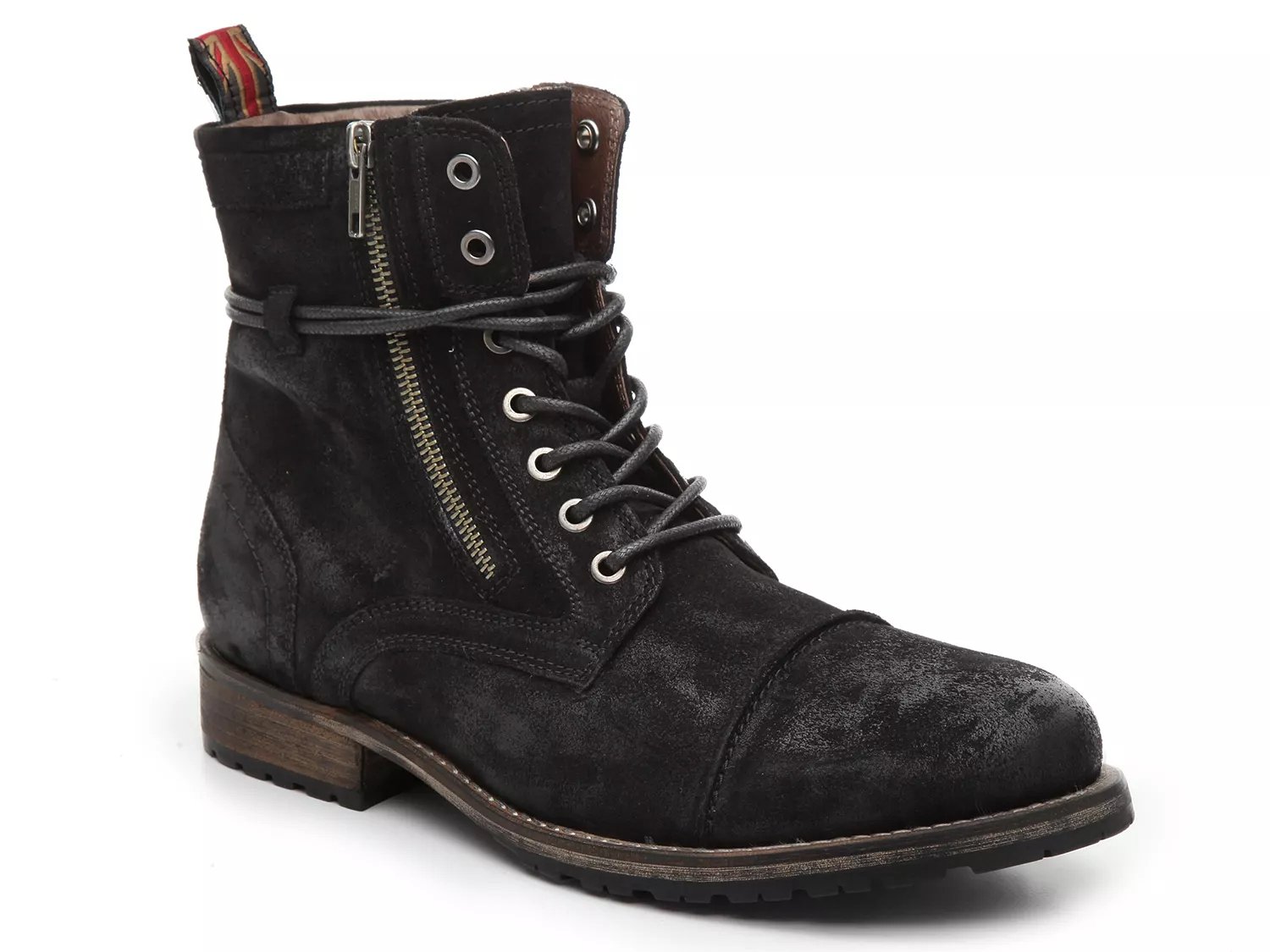 Finish your cold weather look with the Pick Up cap toe boot from Rustic Asphalt. Wrapped laces, side zippers, and a lug sole offer rugged style to this edgy combat boot.