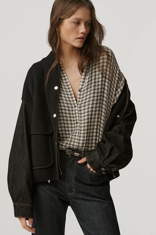 Pilcro Denim & Sweater Mix Oversized Cardigan
