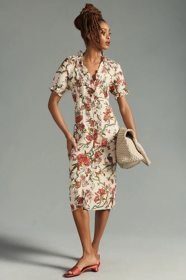 EMBROIDERED FLORAL RUFFLE SHIRT
